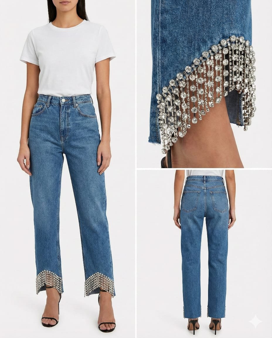 Straight Leg Rhinestone Jeans